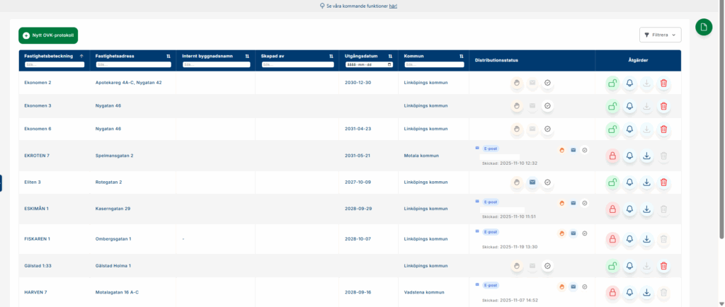 Du kan enkelt söka, filtrera och hitta alla OVK:er på ditt företag, även andra användares.